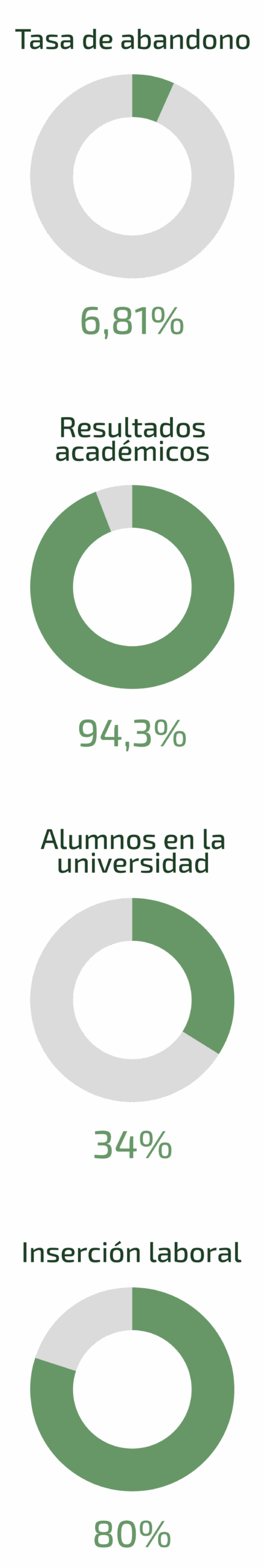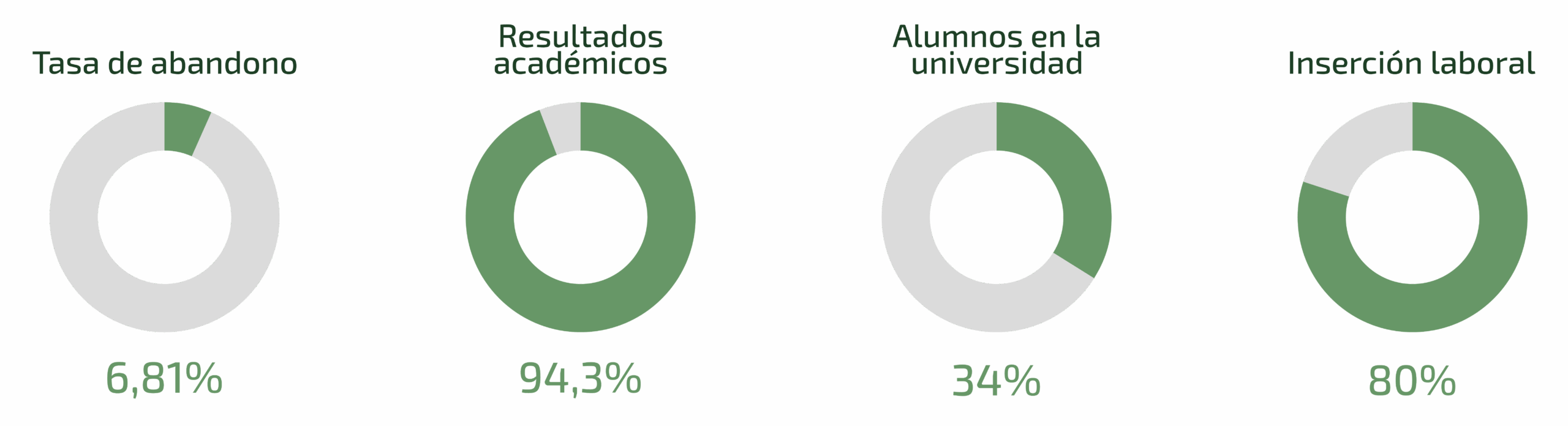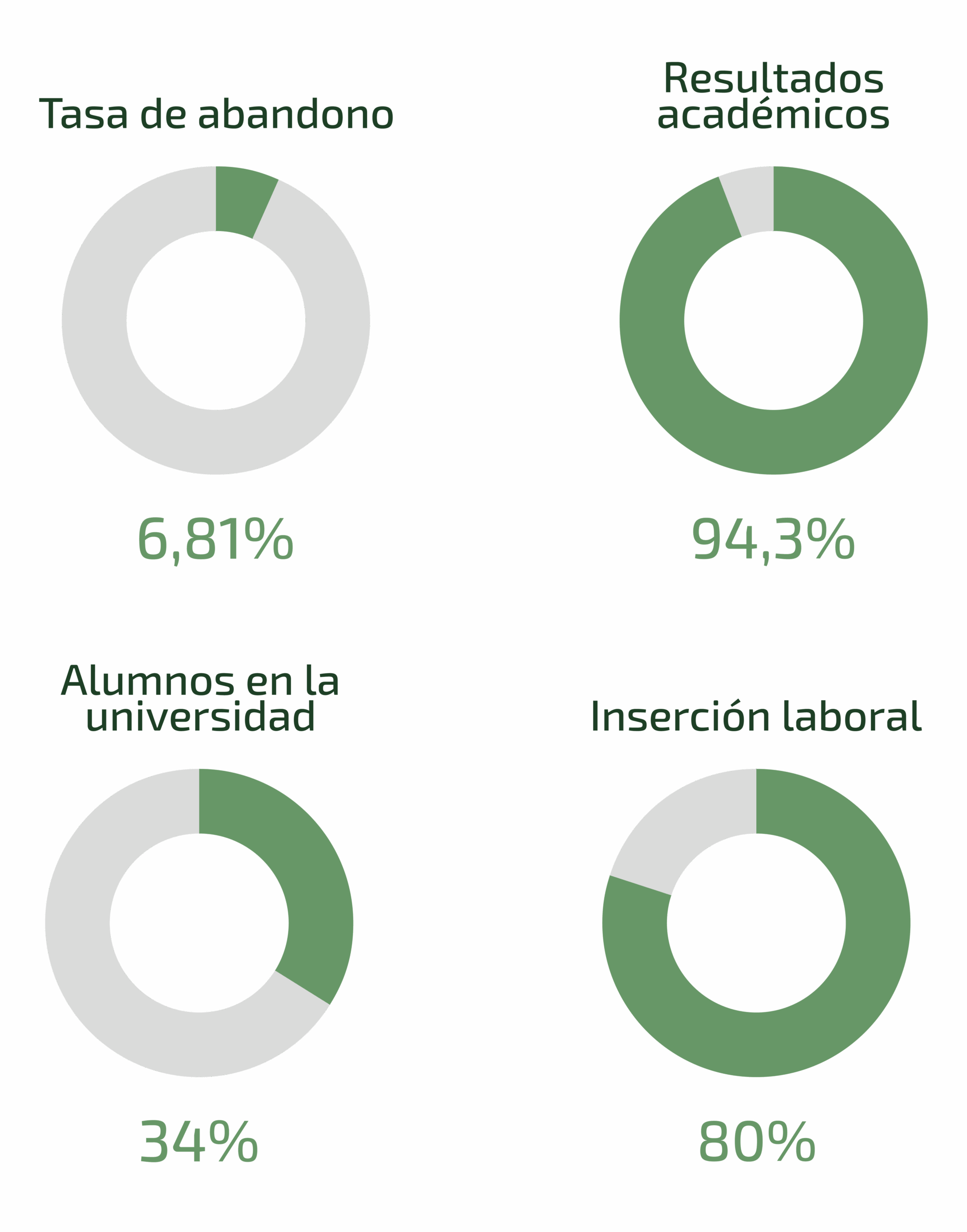 Nuestros más de 1000 convenios de colaboración con profesionales y empresas de todos los sectores, sumado al desarrollo de proyectos específicos y conjuntos con grandes empresas que quieren incorporar a sus plantillas constantemente trabajadores de perfil técnico, da como resultado un alto índice de inserción laboral y emprendimiento de nuestros alumno. Más del 75% en menos de 3 meses.